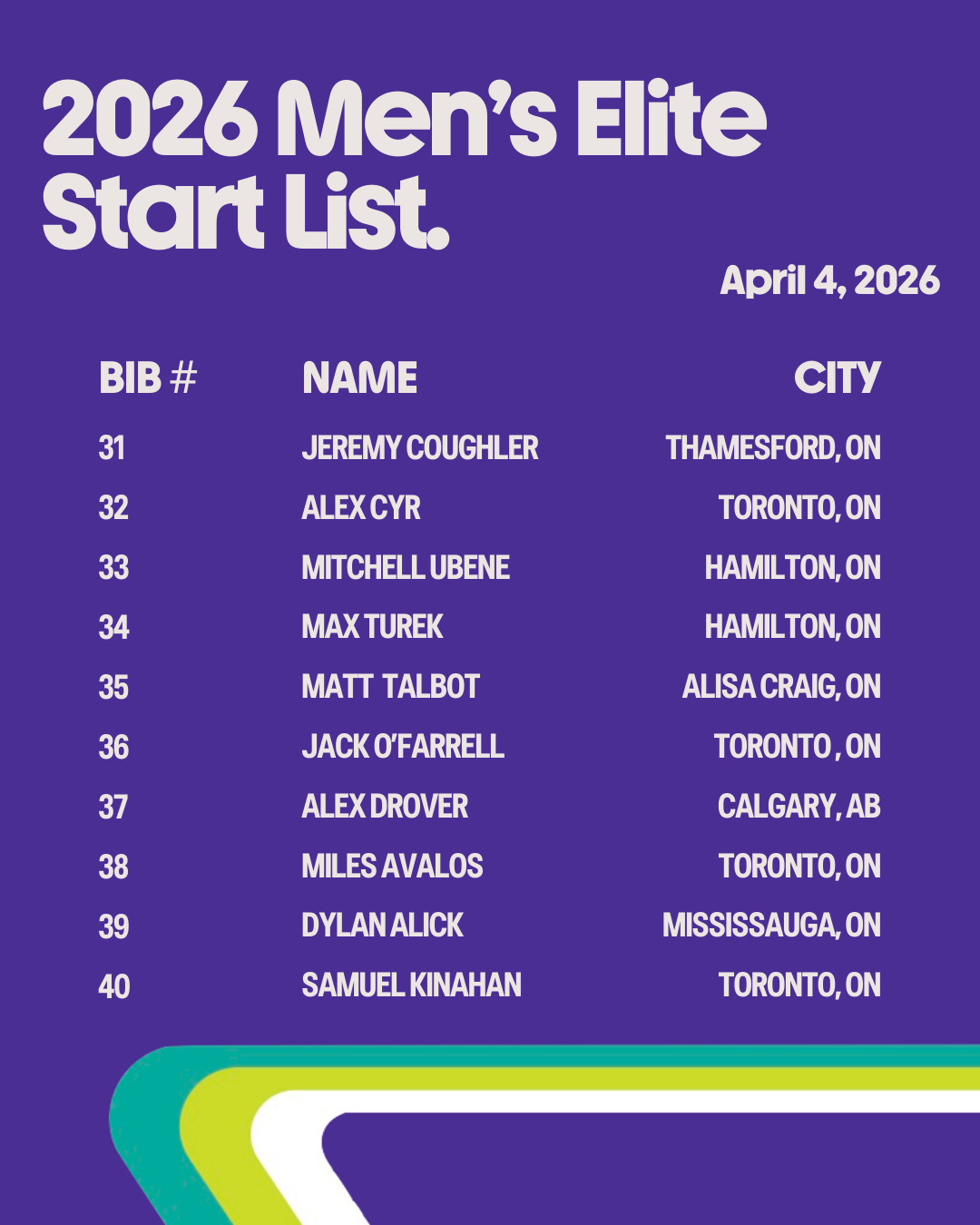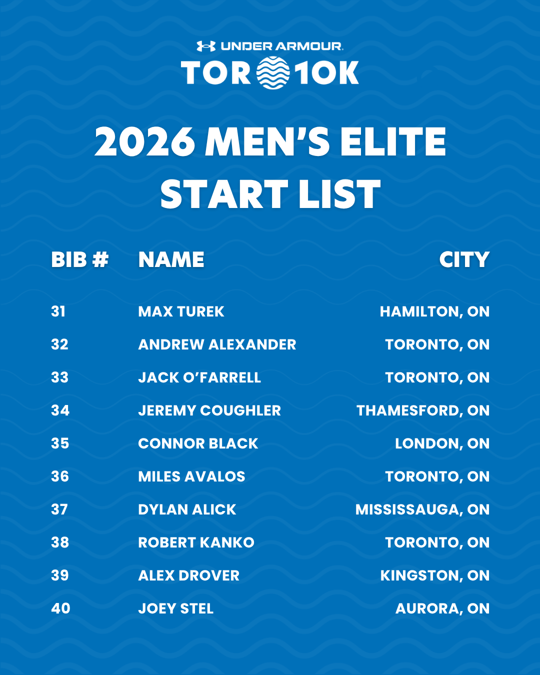 The men’s field is equally deep, led by Max Turek, who arrives in top form after his win at the Spring Run-Off and a 28:36 personal best at the 2025 National 10K Championships. He’ll be joined by Andrew Alexander, the 2024 Canadian 10,000m Champion, setting the stage for a fast and tactical race.