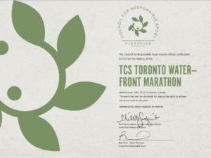 In 2022, the TCS Toronto Waterfront Marathon became the first Canadian event to achieve Evergreen Certification with the Council for Responsible Sport.